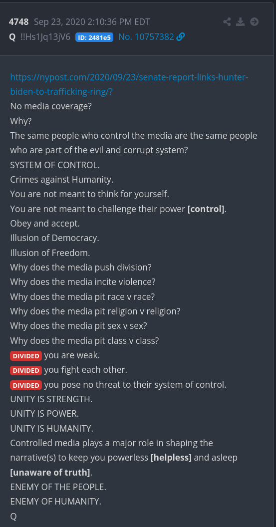 When the Cabal wants to divide us, we need to unite. We need to get over our differences and agree upon what we want to fight for. And I think we all want to fight for the children. United and strong.