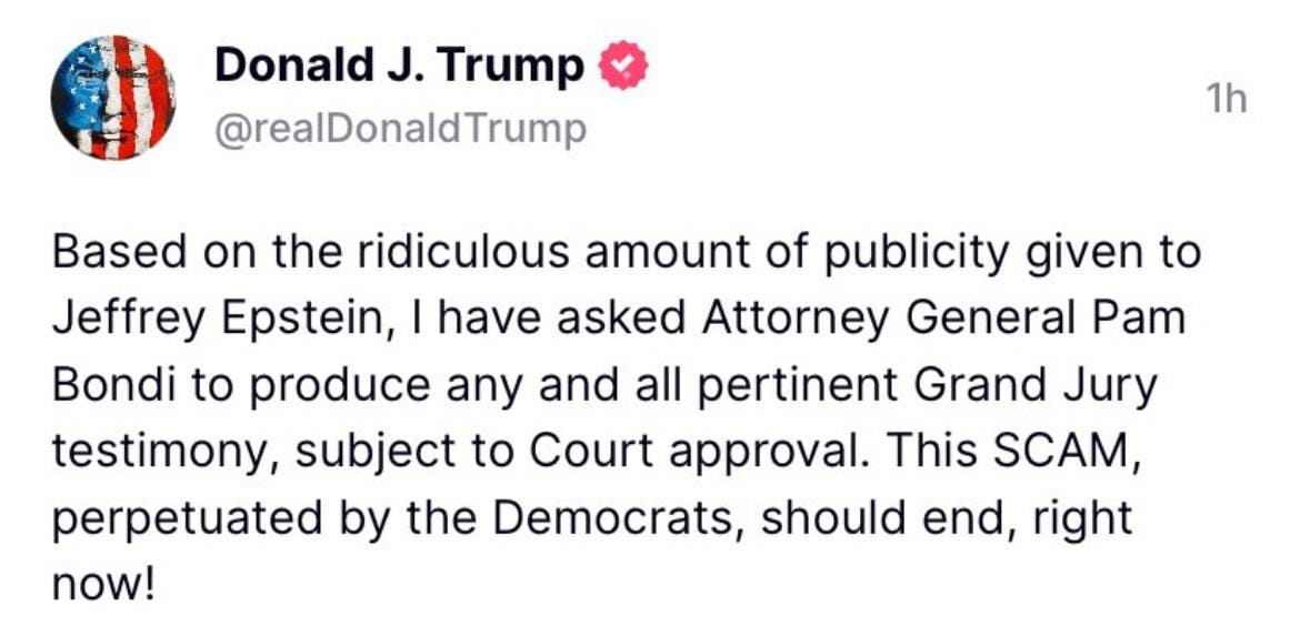 So, what will happen next? Trump has ordered the ‘real’ Epstein dossier to be disclosed, meaning all the files the Grand Jury has in its possession. Meaning all information BEFORE the previous administration could ‘mess’ with it.