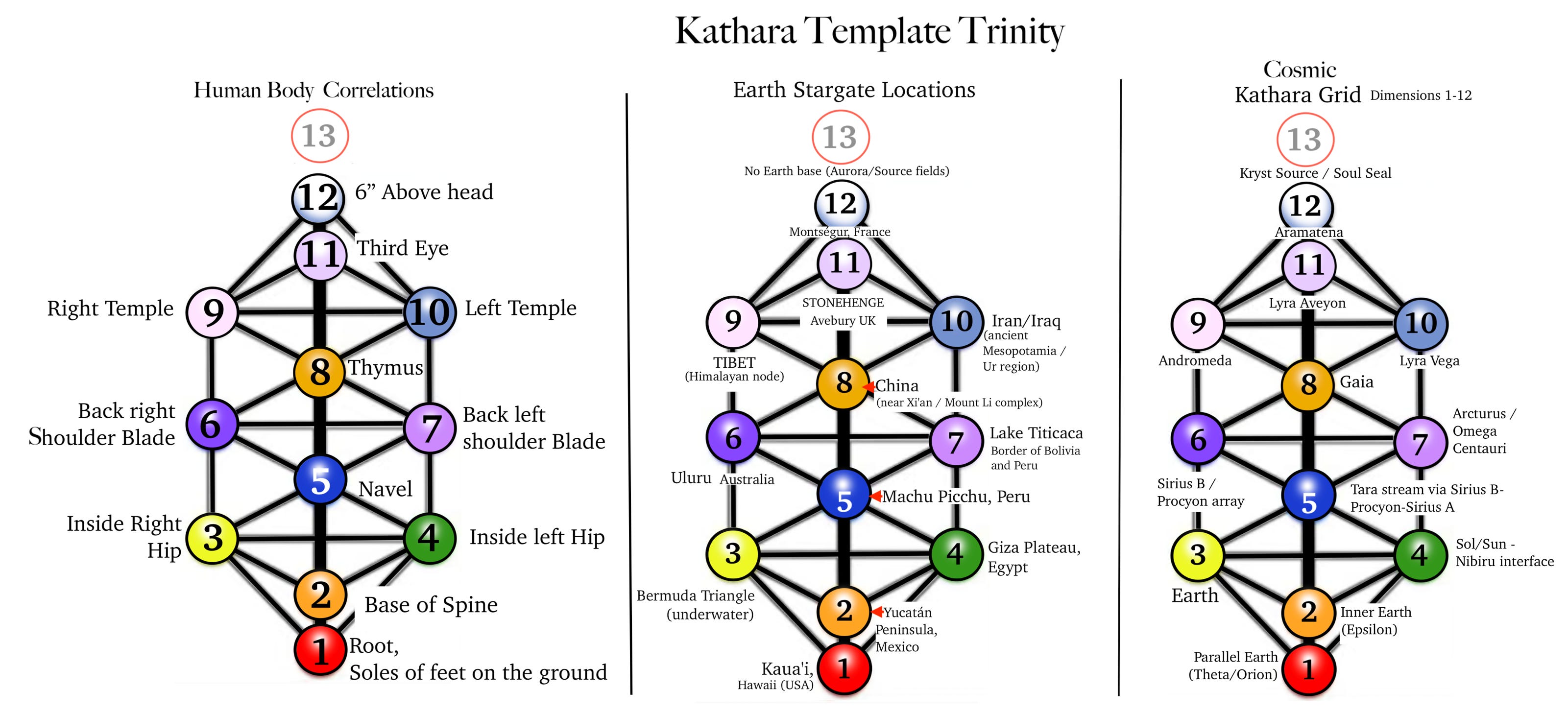 Each one corresponds to a sphere on the Kathara Grid, which is the undistorted morphogenetic template for planetary and human form. These gates are dimensional anchor points — each aligned with a specific dimensional frequency band (D1 through D12) with corresponding Guardian hosting.