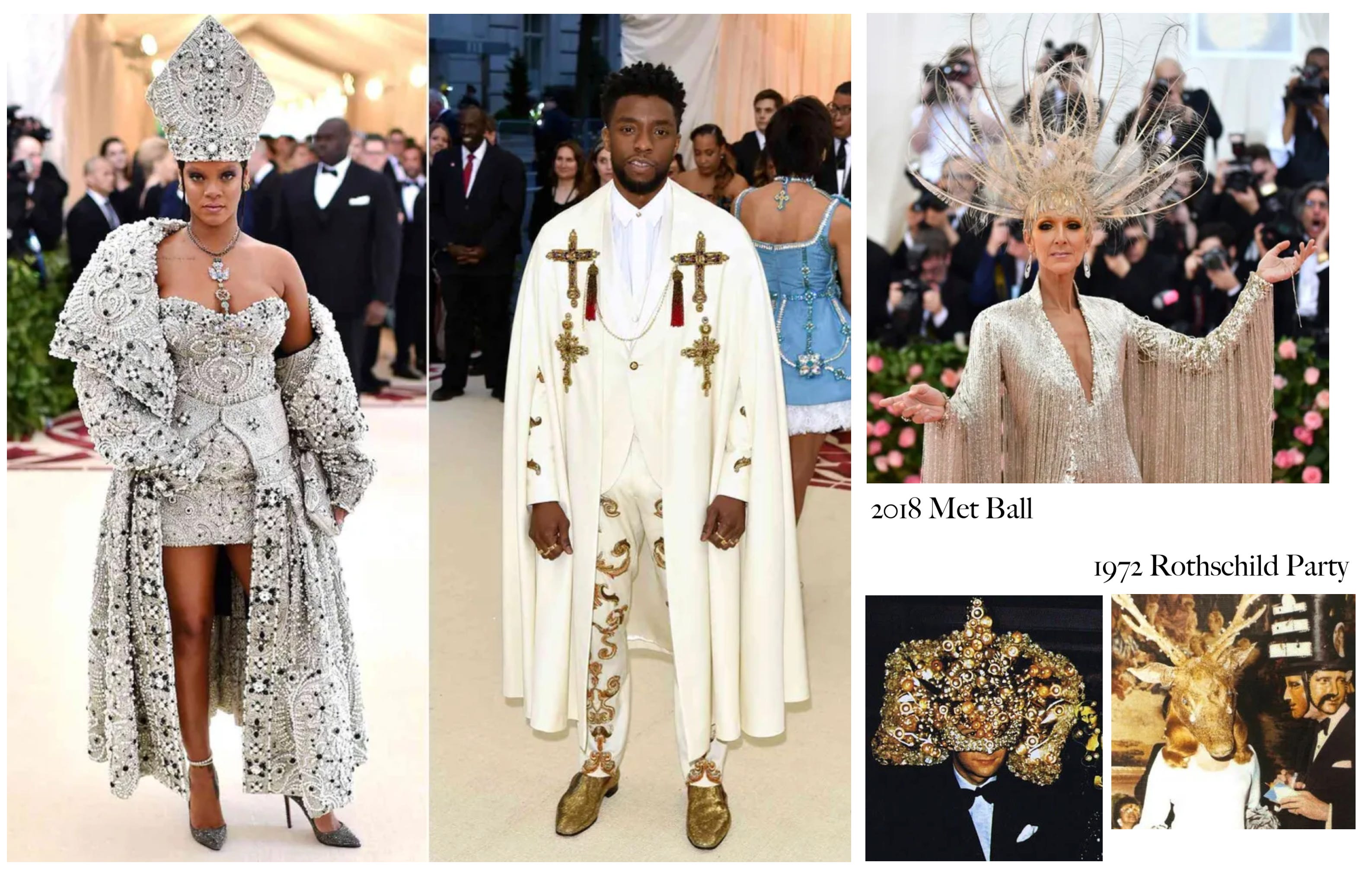 2018: the Met Gala staged papal mitres, jeweled crosses, and halo crowns.