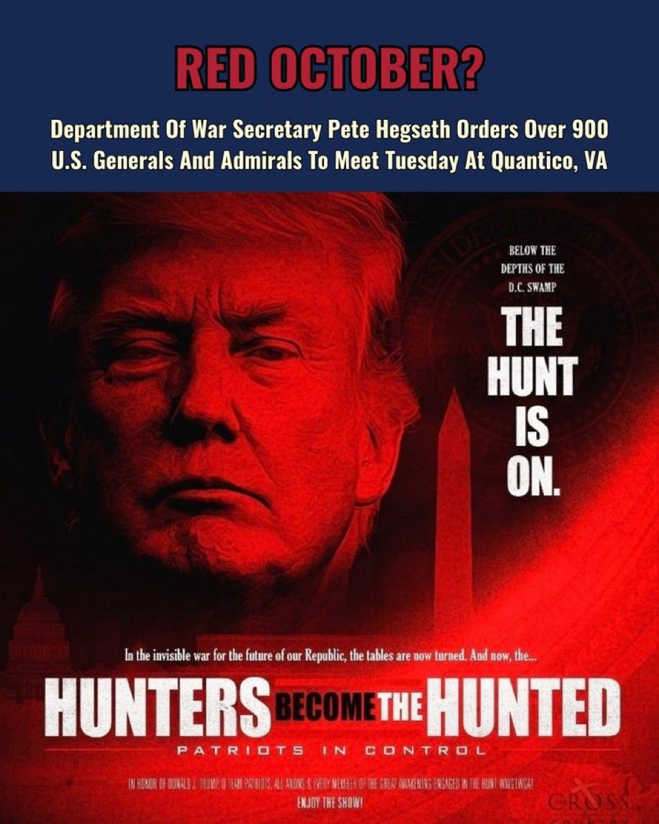 → Over 900 Generals & Admirals were summoned to Quantico by Sec. of WAR Pete Hegseth and President Trump himself will be in attendance