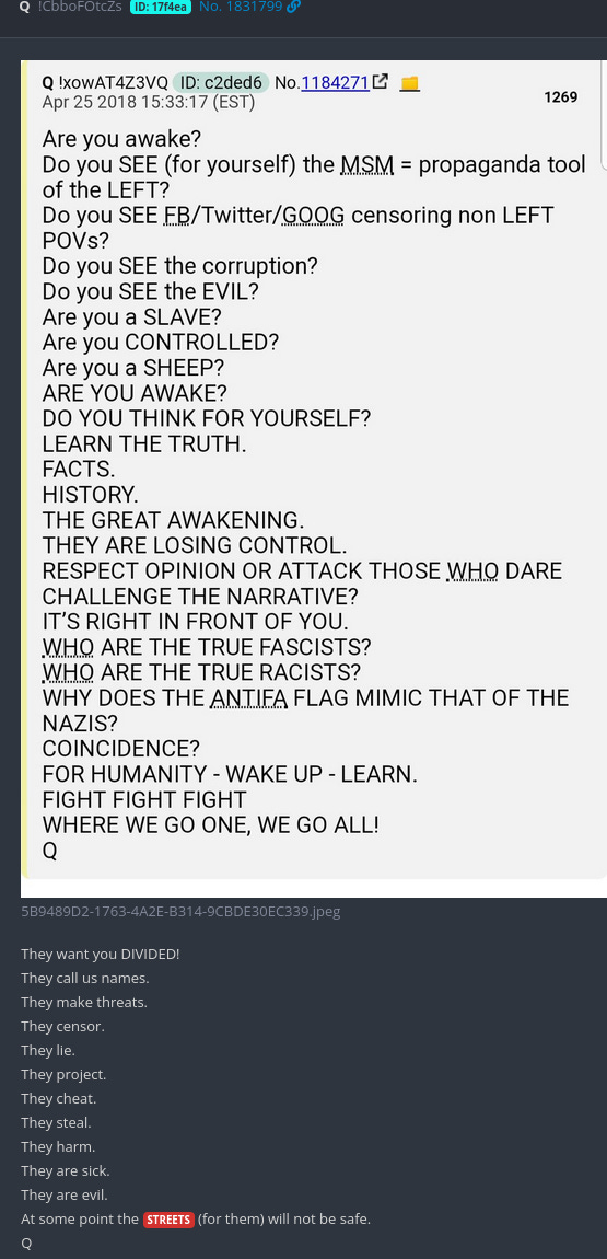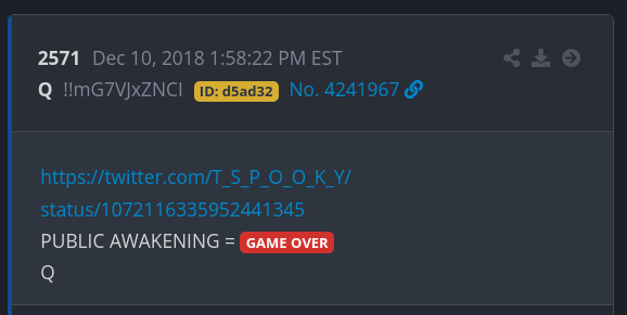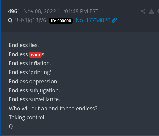 We are now reaching the final stages of the war. Like I said, when the people of the world see with their own eyes, what their so-called leaders have done to them all those years, these ‘leaders won’t be able the walk the streets again’. Another Q-phrase making sense.