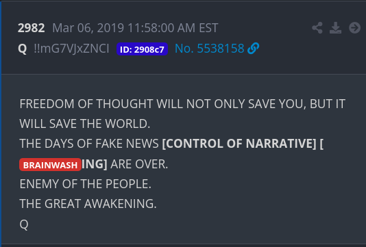 The Great Awakening is all about de- brainwashing the people.