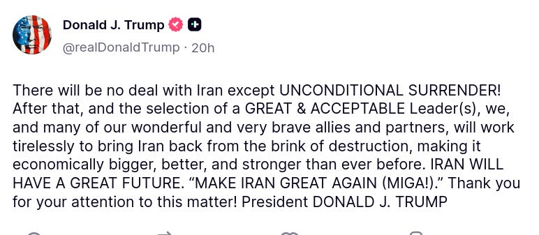 Trump informed both Putin and Xi before the Iranian attacks and both stay on the sideline of this conflict. Obviously they are not as concerned as ‘in the old days’, when they immediately supported Iran in any case of US threat.