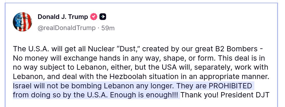 While Israel had been damaged severely by the Iranian bombardments, Trump emphasizes to help Lebanon, showing his purpose to Make Lebanon Great Again.